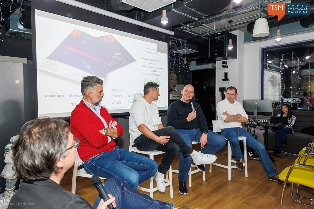 Cotyso Bodea: În trecut am fost implicat în proiecte în care coordonam 100 de oameni, dar la actuala companie am o echipă de 8-9 persoane în Cluj. Unitatea de business se află în Zurich, dar tehnologia se află la Cluj. Circul între cele două locații la două săptămâni. Ca orice start-up, avem nevoie de cât mai multe pârghii, motiv pentru care folosim AI. Acest start-up a fost fondat acum patru ani, iar eu m-am alăturat echipei acum un an și jumătate. Scriu cod cu ajutorul ChatGPT. În 2005 m-am oprit din a scrie cod, iar acum m-am reapucat să scriu cod profesionist cu ChatGPT. Am făcut o pauză de 17 ani, fiind implicat în activități de management. M-am reapucat să scriu cod doar ca să le arăt colegilor mei că ChatGPT poate ajuta cu scrierea rapidă de cod.