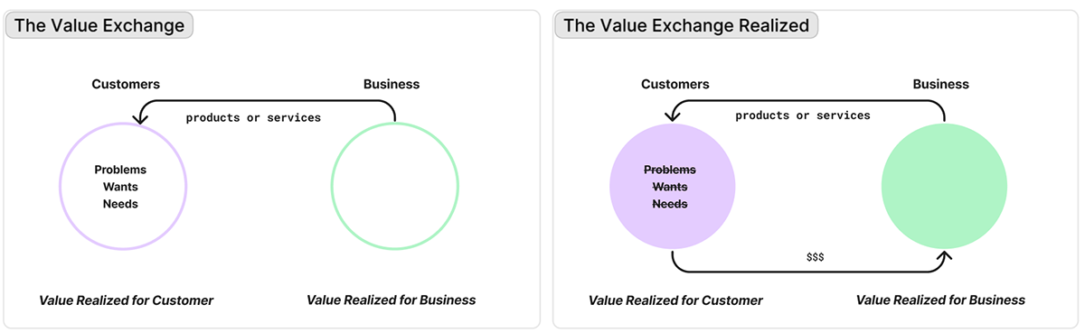 Valoarea este creată atunci când companiile dezvoltă produse care rezolvă probleme reale ale clienților, sau iau în considerare nevoi și dorințe ale acestora. Doar în momentul în care această condiție este îndeplinită, valoarea oferită clienților se reflectă în valoare pentru companie.