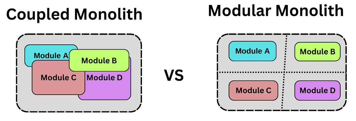 Arhitectura modulară monolitică păstrează simplitatea monoliților, dar încorporează modularitatea necesară pentru gestionarea complexității.