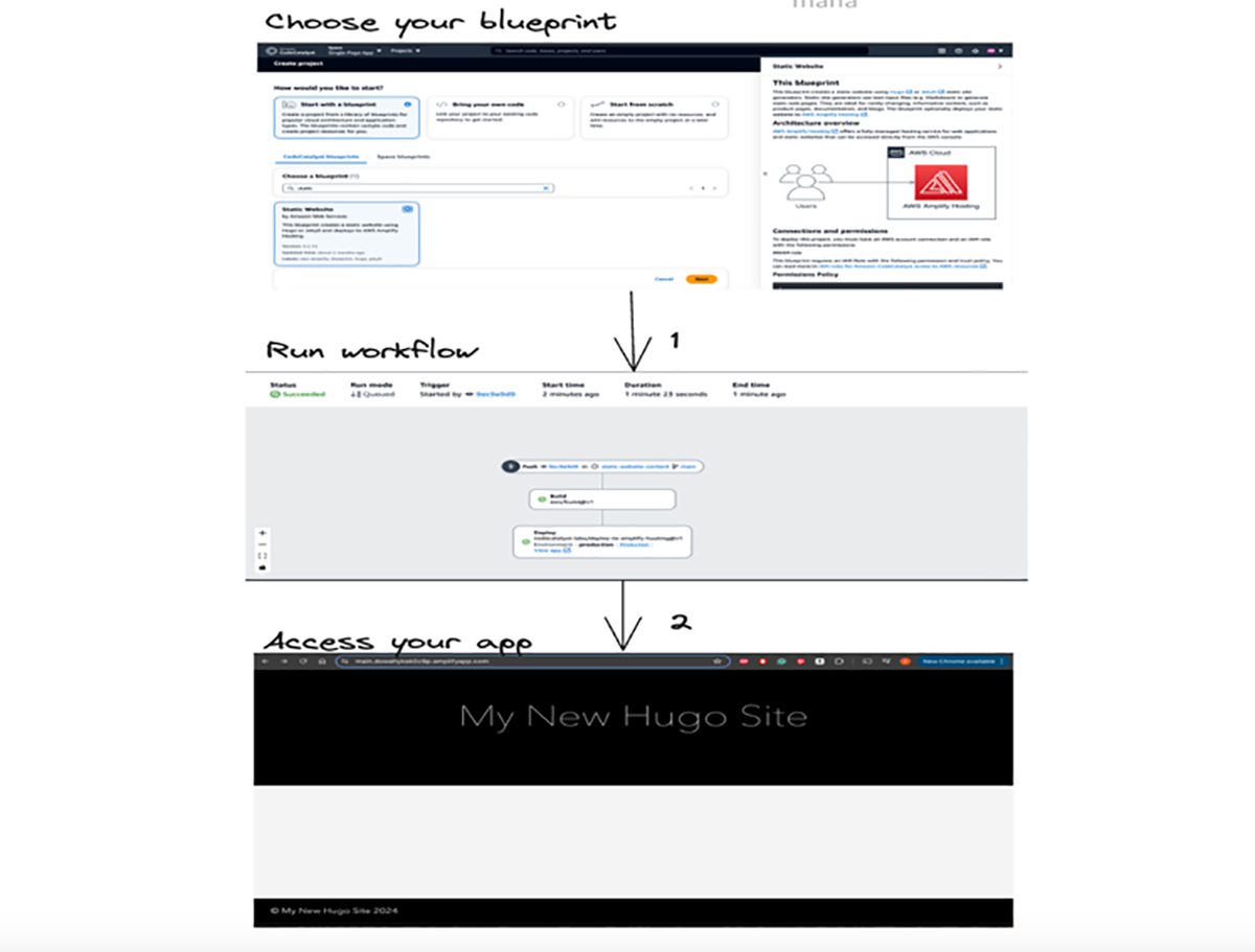 Fig.1 Trei pași simpli pentru desfășurarea în câteva minute a unei pagini statice