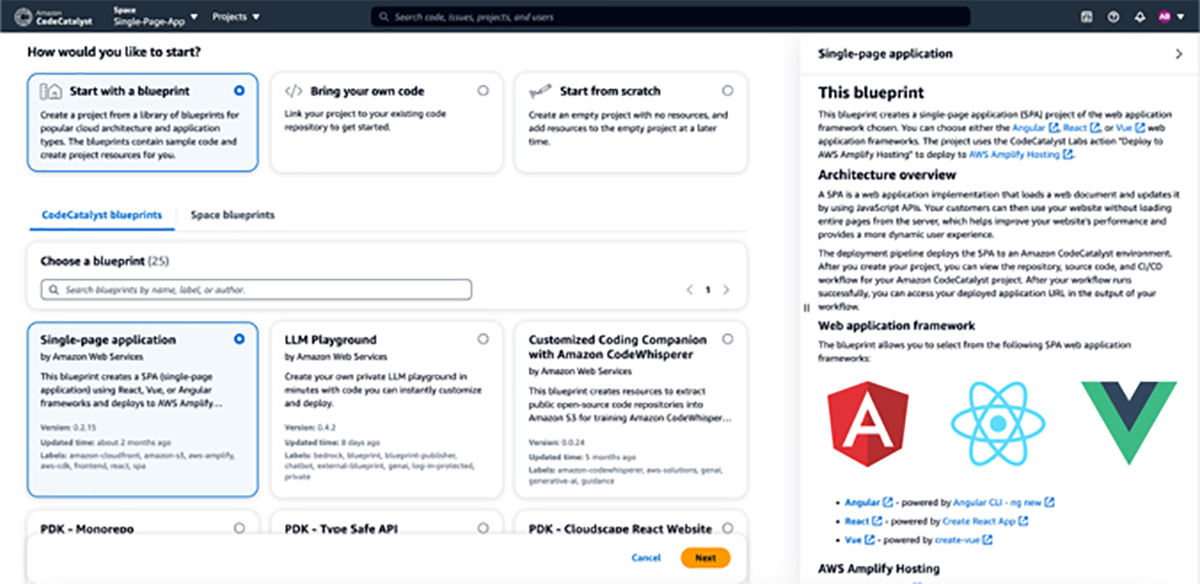 Mai departe, vom prezenta câteva dintre capabilitățile CodeCatalyst.