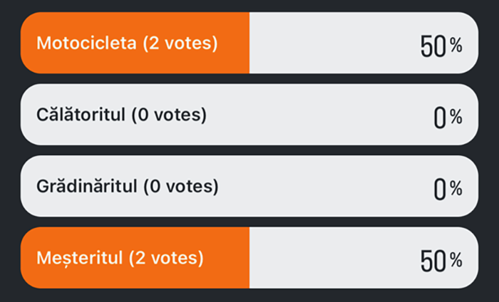 Luna aceasta nu am avut mari surprize în ceea ce privește răspunsurile primite. Acestea au întărit părerile noastre în ceea ce privește tehnologia, lucrul de acasă, dar și hobby-urile. Ne auzim luna viitoare!