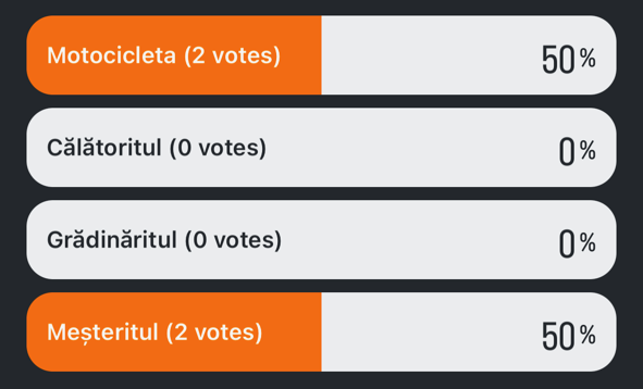 După meșterit, se pare că motocicleta este destul de populară printre cititori. Ne bucurăm să auzim asta ! Poate la un moment dat vom face chiar și un grup de motocicliști programatori.