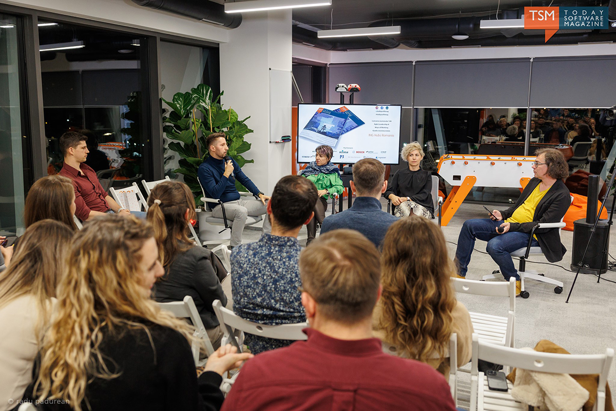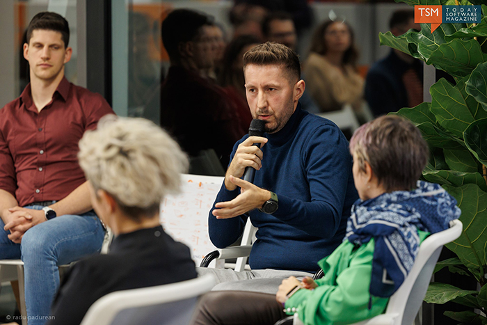Andreea Pârvu: Eu vreau să ies din sfera tehnică, deoarece știu că unele abilități tehnice de acum 10-15 ani nu mai contează. Trebuie să ne readaptăm din punct de vedere tehnic și să învățăm lucruri noi în permanență. Eu folosesc foarte mult acronime, iar acronimul meu preferat pentru lider este H(aș)-H(aș)-H(aș). Un lider este Human, Humble și are Humor. Liderii trebuie să aibă o vulnerabilitate în fața echipei, iar echipa să aibă vulnerabilitate unul către altul și față de lider. Vorbeam de importanța comunicării deschise. Dacă există bariere impuse de lider, acestea sunt greu de trecut, de spart. Apoi, mulți lideri uită de unde au plecat, dar uită și de ce sunt acolo. Sunt orientați spre a arăta ce pot, spre performanță, spre a trage de echipă și de ei înșiși. A fi umil se referă la cum te poziționezi tu în sprijinul echipei tale. Apoi, partea de umor este și ea esențială, deoarece noi nu mai știm să ne distrăm. Intrăm în ședințe, mergem la serviciu și suntem extraordinar de serioși. Livrăm, dar trebuie să mai și râdem.