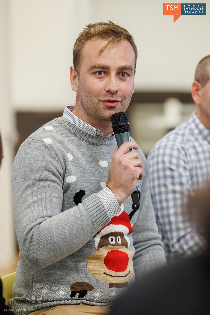 Adrian Iancu: Așa cum a spus și colegul meu, problema nu ține de limbaj. Orice programator Java poate învăța limbajul ABAP, doar că pentru a învăța logica de business este nevoie de ani buni. Este vorba de un mediu de lucru. Nu avem un om care să le știe pe toate. Pentru toate celelalte, îl avem pe Călin.