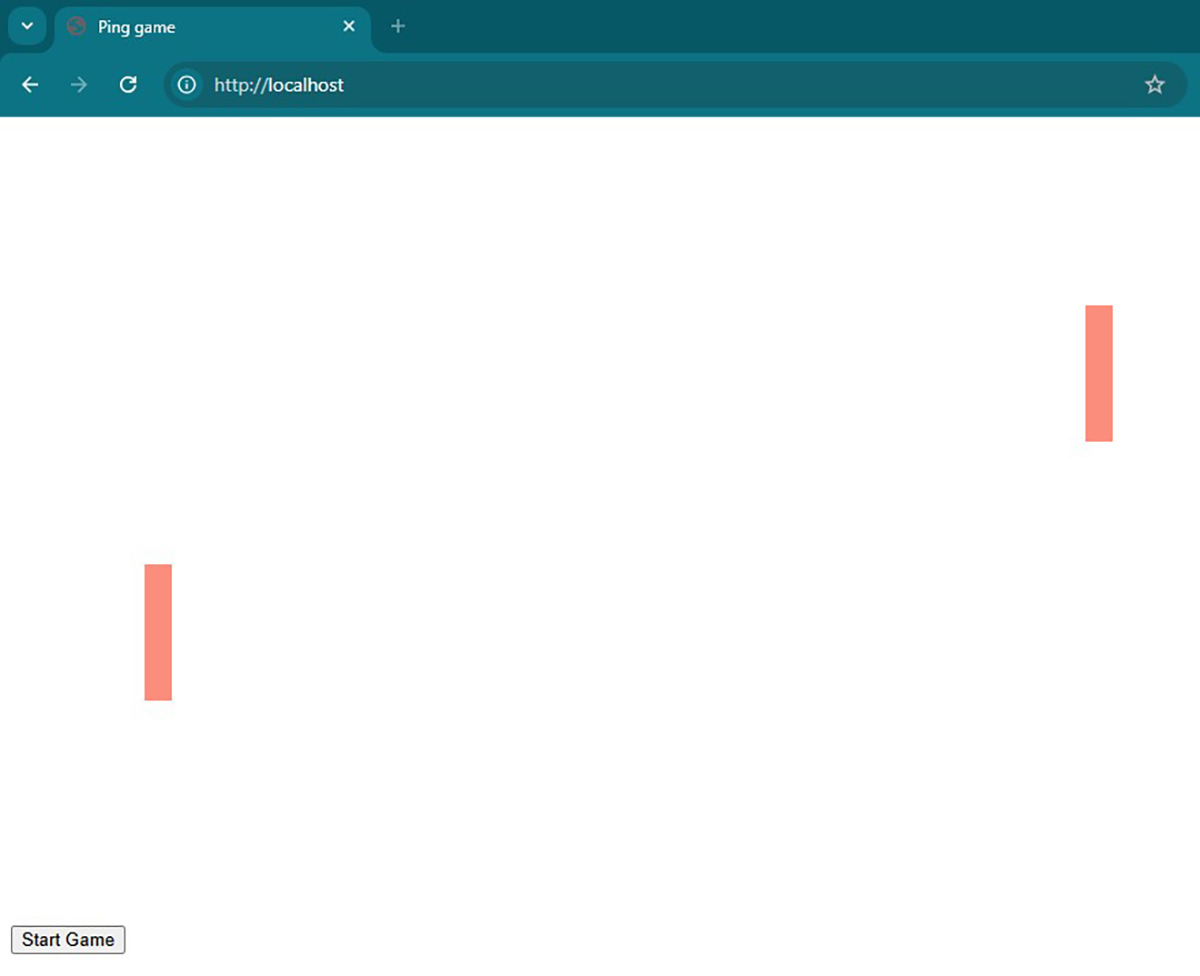 Pagina web expusă va conține doar un buton de start și elementul Canvas pe care vom desena cele două palete de ping pong.