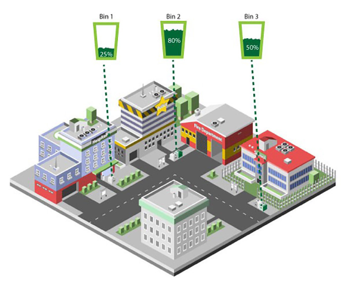 Un exemplu notabil al succesului soluției de management al deșeurilor este orașul Praga, Cehia, unde tehnologia IoT a fost implementată cu succes atât pentru pubelele de suprafață, cât și pentru cele îngropate. În ultimii șase ani, au fost instalați peste 3924 de senzori de nivel.