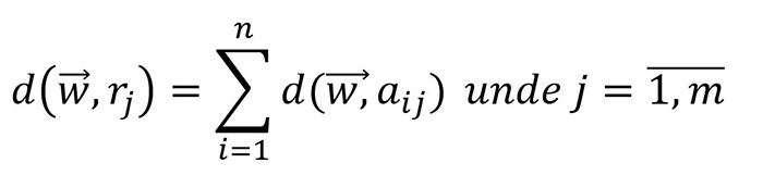 Așadar, folosind această distanță, putem defini coeficientul de relevanță pentru fiecare linie din tabel, în raport cu lista de cuvinte de intrare:
