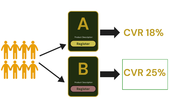 Pentru canalele de marketing plătit, A/B testingul presupune crearea a două versiuni ale aceleiași pagini, cu un singur element modificat (cum ar fi poziția unui banner sau culoarea unui buton). Fiecare variantă este servită către jumătate din segmentul de utilizatori, iar la finalul campaniei, performanța comparativă a celor două segmente va indica varianta câștigătoare.