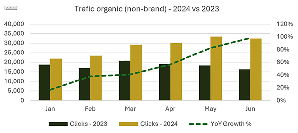 Rezultatele unui experiment intern arată o creștere de 54% a traficului non-branded în H1 2024 față de H1 2023, ca rezultat al campaniilor de PR (72 de linkuri și 6 mențiuni ale brandului atrase în publicații de renume).