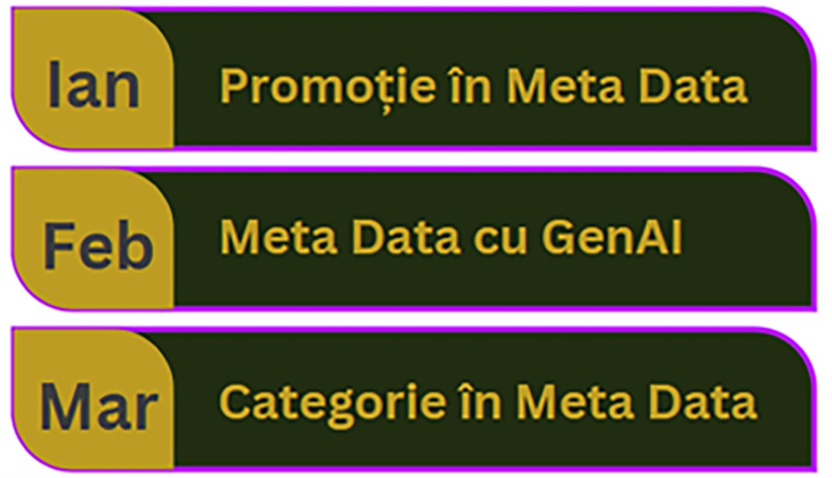 Exemplu Oportunitate: Rata de Conversie de la Impresie la Click (CTR) este de 1%. Vom implementa un test de conversie pentru a măsura dacă adăugând o promoție în Meta Data, rata de conversie va crește.