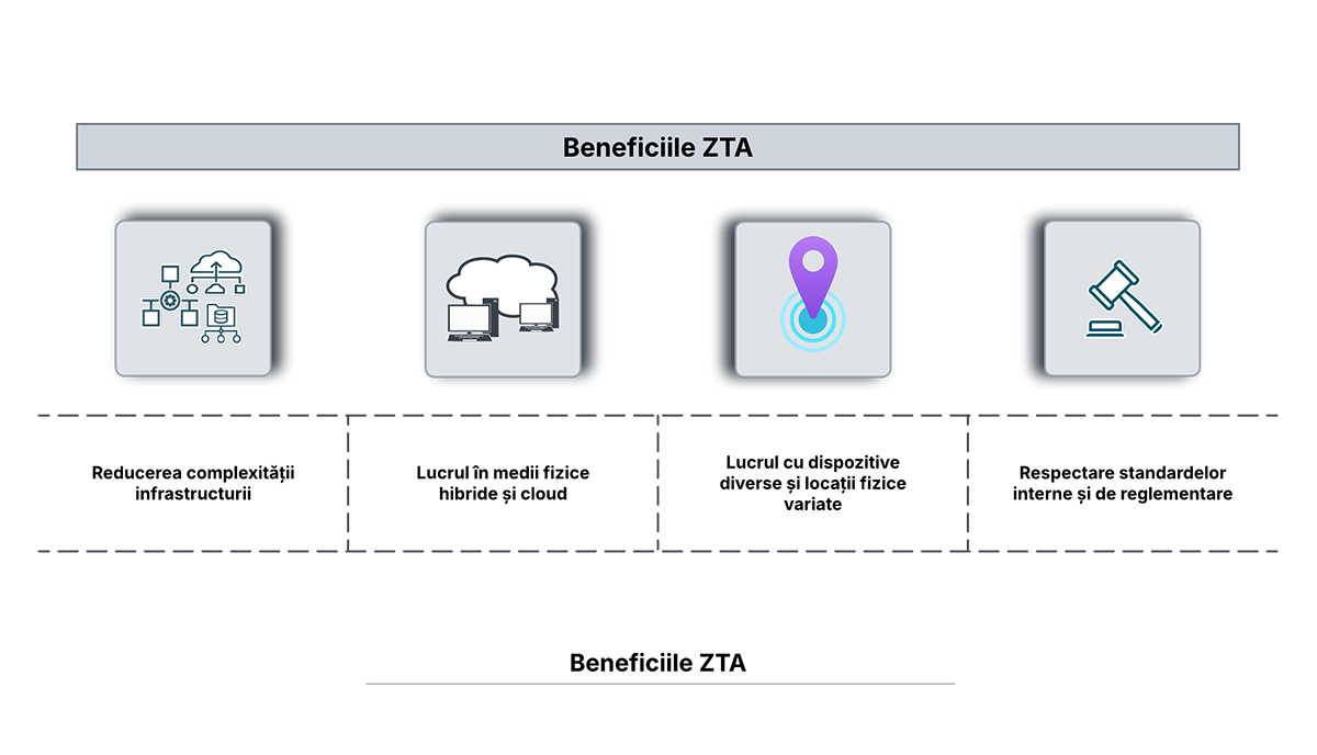Prin adoptarea ZTA, organizațiile pot îmbunătăți protecția activelor digitale și se pot adapta mai bine la mediile IT moderne, în special în infrastructurile de tip cloud și hibride.