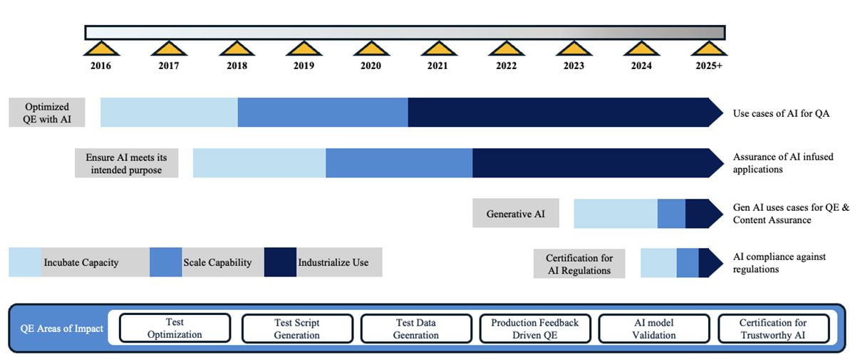 Pe măsură ce AI s-a maturizat, rolul său s-a extins dincolo de simpla susținere a QA, devenind o parte integrantă a asigurării că sistemele bazate pe AI sunt adecvate scopului. Inteligența artificială generativă a deschis noi frontiere, revoluționând automatizarea testelor, în timp ce certificările de reglementare au devenit esențiale pentru a garanta fiabilitatea și încrederea în AI.
