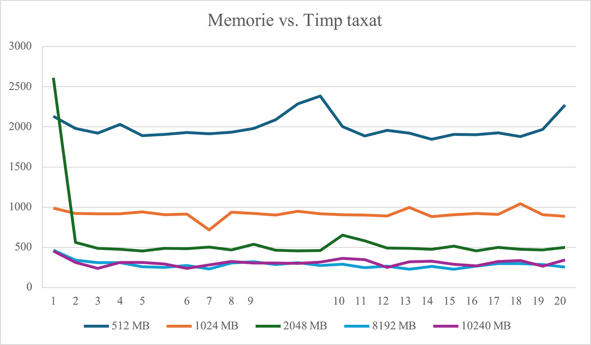Așadar, creșterea memoriei alocate poate îmbunătăți timpul de răspuns pentru funcțiile Lambda până într-un anumit punct, în care raportul costuri-performanță nu mai este rentabil, iar îmbunătățirile devin marginale. În funcție de contextul proiectului și cerințele acestuia, poate exista necesitatea unor timpi de răspuns mai reduși.
