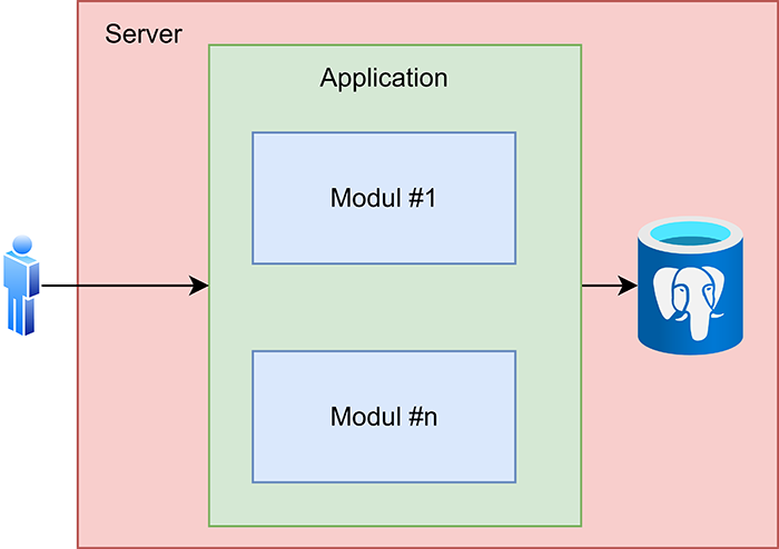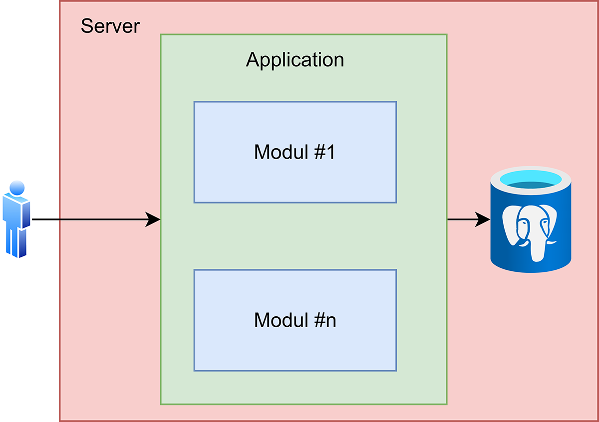Un monolit scris în Java pornește, de regulă, de la un fișier JAR/WAR care conține tot: controllere REST, servicii de business, repository-uri JPA, batchuri, job Schedule, pagini Thymeleaf sau orice alt generator de HTML, template-uri e-mail și poate chiar module de raportare și generare de date cum ar fi Jasper.