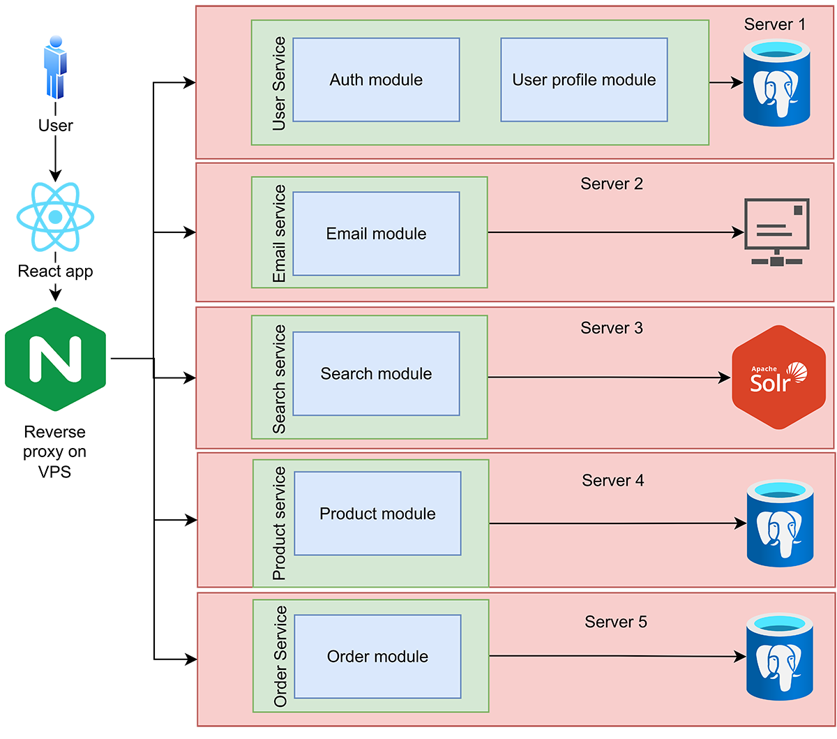 De notat că toate serviciile au fost create și puse în containere Docker, astfel totul s-a putut automatiza. De altfel, s-a adăugat NGINX ca reverse proxy.