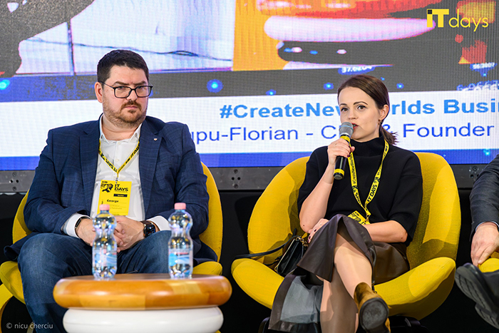 Georgiana Lupu-Florian: În ceea ce privește intraprenoriatul, am avut mai multe inițiative în companie, dar, mai recent, trebuie să recunosc că am apăsat mai mult pedala de frână la acest capitol. Am avut anual un concurs de pitching, iar colegii puteau propune idei de produse digitale. În urma votului, compania finanța un MVP care, ulterior, să fie validat. Astfel, s-au născut câteva produse interesante. Pandemia a dus la o încetinire a ritmului, deoarece nu mai găseam oameni care să ajute. Noi, ca să ținem ritmul, avem sesiuni de product discovery și brainstorming cu clienții noștri. În aceste etape, implicăm developerii și designerii, deci are loc și partea aceasta creativă. Mergem cu propuneri către clienții noștri pentru a modela împreună produsele digitale construite pentru ei. Pentru că tot vorbim de educație, îmi amintesc de panelul de anul trecut unde atmosfera era puțin mai sumbră, deoarece eram pe o piață mai dificilă ca acum. Spuneam anul trecut că nu se mai organizează internshipuri și că îmi doresc să organizăm internshipuri din nou, deoarece energia cu care vin tinerii pasionați și motivați este absolut vitală pentru orice organizație. Mă bucur că, anul acesta, am organizat un internship în zona de web. Ne implicăm intern și extern. Ceea ce ne caracterizează este dorința de a modela ecosistemul local. Susținem evenimente de inovație, hackatons, mentorăm foarte mult. Ne bucurăm să vedem cum crește ecosistemul start-upului în Cluj. Avem deja și investiții destul de mari în start-upuri, proiecte sustenabile. Beneficiile sunt nenumărate. Cluj este pus pe hartă. Cresc skillurile care apoi sunt folosite și de noi. În ultima vreme, am lucrat foarte mult cu produse din zona de FinTech. Ne bucurăm și de povestea de succes a unui partener de-al nostru din US care dorește să dea acces la resurse populației sărace din SUA prin niște împrumuturi. Până acum, s-au rulat undeva la 12 milioane de dolari prin aplicația respectivă. Cererea este mare. Suntem implicați în proiecte pentru clienți români. Am ajutat și Cargus la schimbarea designului. Toate reprezintă o mare satisfacție pentru mine în condițiile în care am cochetat ceva timp cu plecarea din țară, eu lucrând și în Anglia. A fost o mare dorință de-a mea să lucrăm și cu clienți români, să contribuim la digitalizarea țării și să contribuim la dezvoltarea IP-ului de aici. Continuăm cu proiectul Slow Delta, o aplicație a asociației regretatului Ivan Patzaichin. Este o aplicație folosită pentru navigarea Dunării, promovarea agroturismului. Lucrăm și în domeniul sănătății unde avem mai multe produse despre care putem discuta separat.