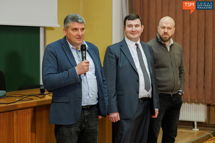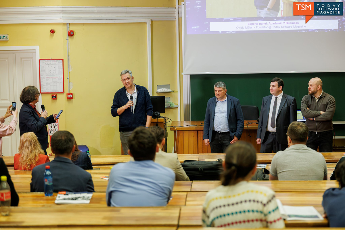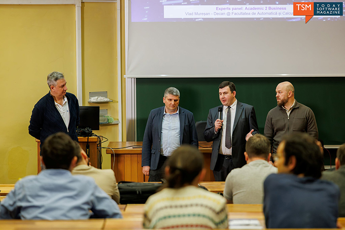 Vlad Mureșan: Am absolvit Facultatea de Automatică și Calculatoare. Sunt profesor la Departamentul de Automatică și sunt decan al facultății. Mă bucur că am organizat acest eveniment. Cred că este încă un eveniment care duce la consolidarea relațiilor cu companiile din domeniul IT și, după modelul statelor care au o societate foarte dezvoltată, cred că o conexiune între facultăți și companii este foarte importantă. Realitatea este că studenții vor fi absorbiți de mediul economic. De asemenea, mediul economic îi va angaja pe studenții noștri, deci avem interese comune.