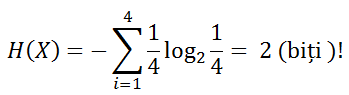 Cât de multă informație este necesară pentru a stoca o variabilă aleatoare X care ia valori în mulțimea {00, 01, 10, 11}? Luăm în considerare