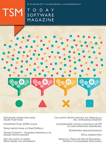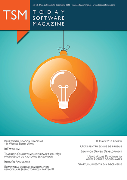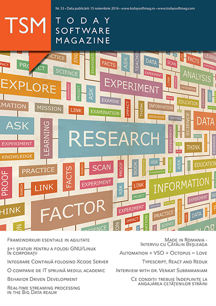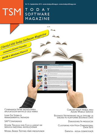 În 6 februarie 2012, a apărut primul număr al revistei Today Software Magazine. Îmi amintesc cum la inaugurarea revistei, alături de colegii mei de la Gemini Solutions, ne-am străduit să creăm o listă cu toate cunoștințele noastre din zona de IT. Ne-am strâns douăzeci de oameni, constituindu-se astfel primul eveniment de lansare. Atunci nu ne-am gândit să prezentăm articolele, doar am stat la povești și am împărțit revista participanților. De atunci acest proiect a trecut prin mai multe transformări și colaborări pentru a ajunge în forma de astăzi.