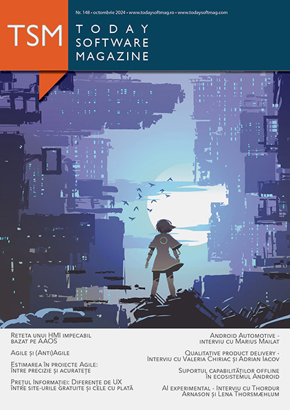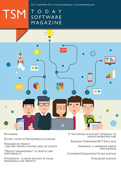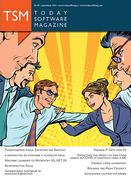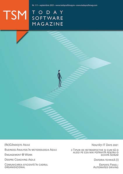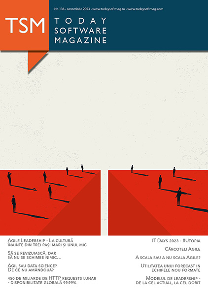 Am simțit nevoia să revin, prin acest articol, asupra unui subiect pe care de-a lungul timpului l-am întors pe toate părțile: schimbarea. Chiar în Today Software Magazine, în șase dintre cele treisprezece articole pe care le-am publicat, am vorbit într-un fel sau altul despre schimbare. Ba că e necesară ([1], [5]), ba că e naturală și firească ([3]); uneori descriind procese sau frameworkuri care ne-ar putea ajuta în adaptare ([2], [4]), alteori propunând schimbarea modului de abordare a... schimbării ([6]).