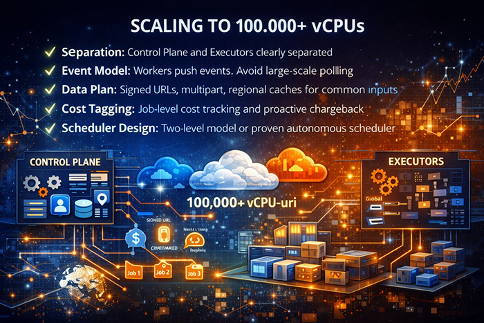 Rularea a sute de mii de procesoare virtuale (vCPU-uri) în cloud cere o abordare nouă. Nu înseamnă doar mai multe mașini, ci și un mod diferit de a gândi, de a opera și de a gestiona costurile. În acest articol, prezint tipare arhitecturale practice, compromisuri din lumea reală și lecții operaționale pentru echipe care evoluează de la experimente mici la platforme reziliente, multi-cloud pentru sarcini de lucru puternic paralele.