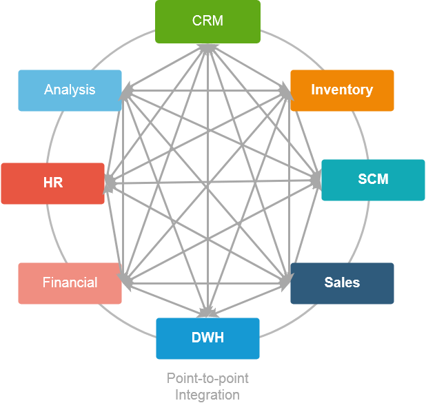 Inițial, pentru a facilita interconectarea acestora, s-a aplicat modelul de integrare point-to-point.