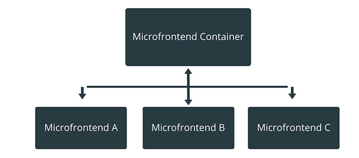 Deși avem o arhitectură de micro frontenduri, ideal ar fi să existe, în continuare, o componentă principală (container/părinte/shell), care va trebui să le integreze pe celelalte (copii). Doar prin intermediul acesteia, în cazuri speciale, micro frontendurile să poată comunica între ele.